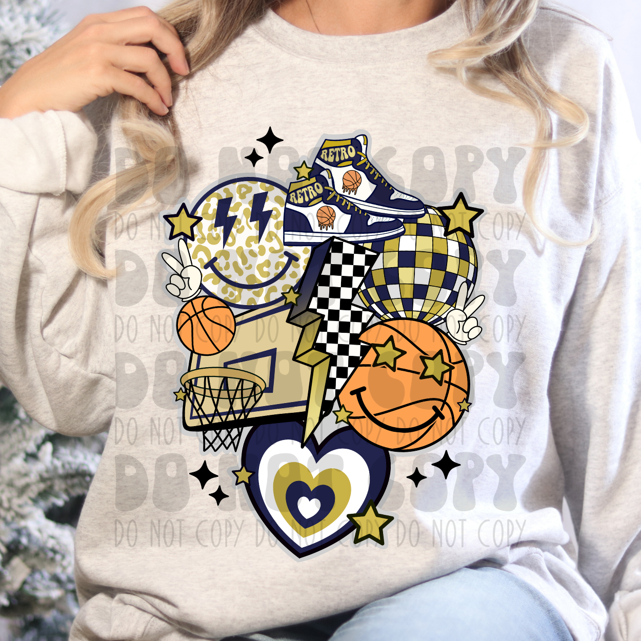 BASKETBALL COLLAGE NAVY/GOLD - DTF TRANSFER