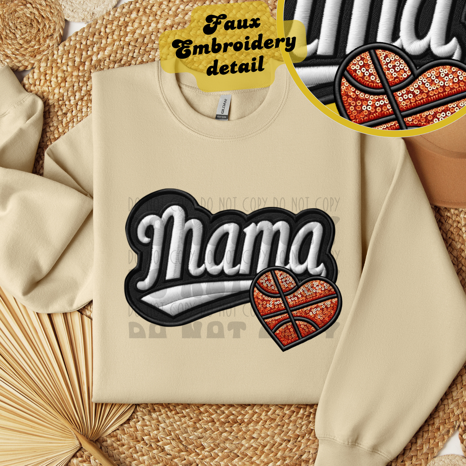 MAMA FAUX EMBROIDERY BASKETBALL - DTF TRANSFER